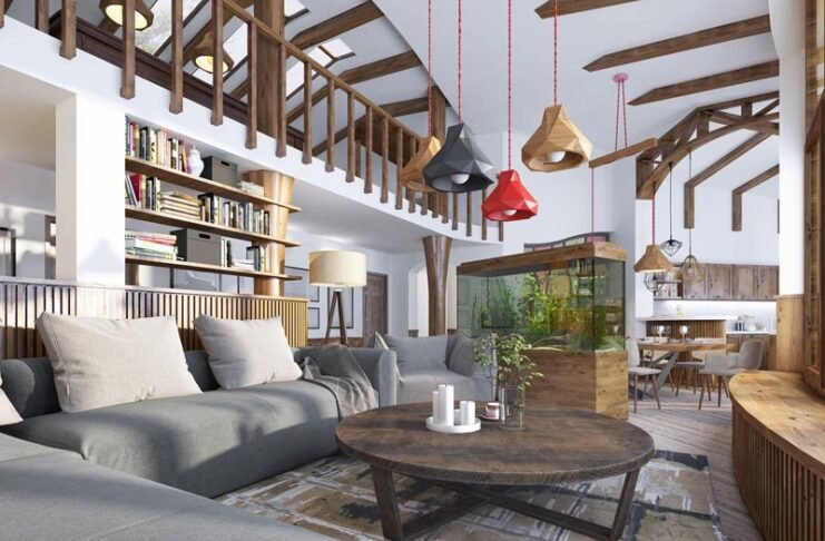 Luxe Hallway with Chess Table Flooring and Large Rounded Windows